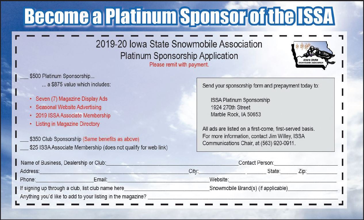 | Copyright 2003-17 Iowa State Snowmobile Association. All Rights Reserved. Questions or comments? webmaster@iowasnowmobiler.com |